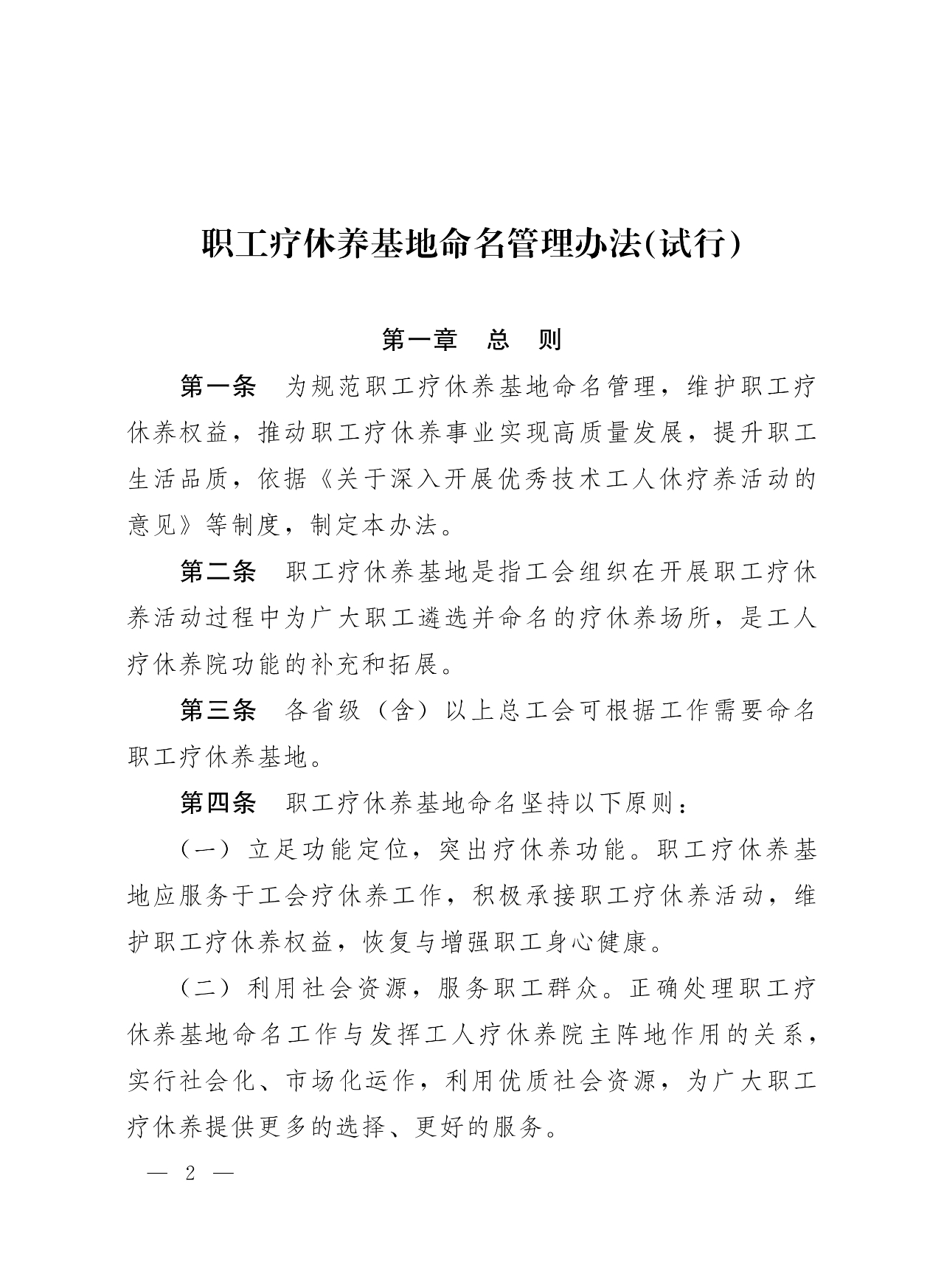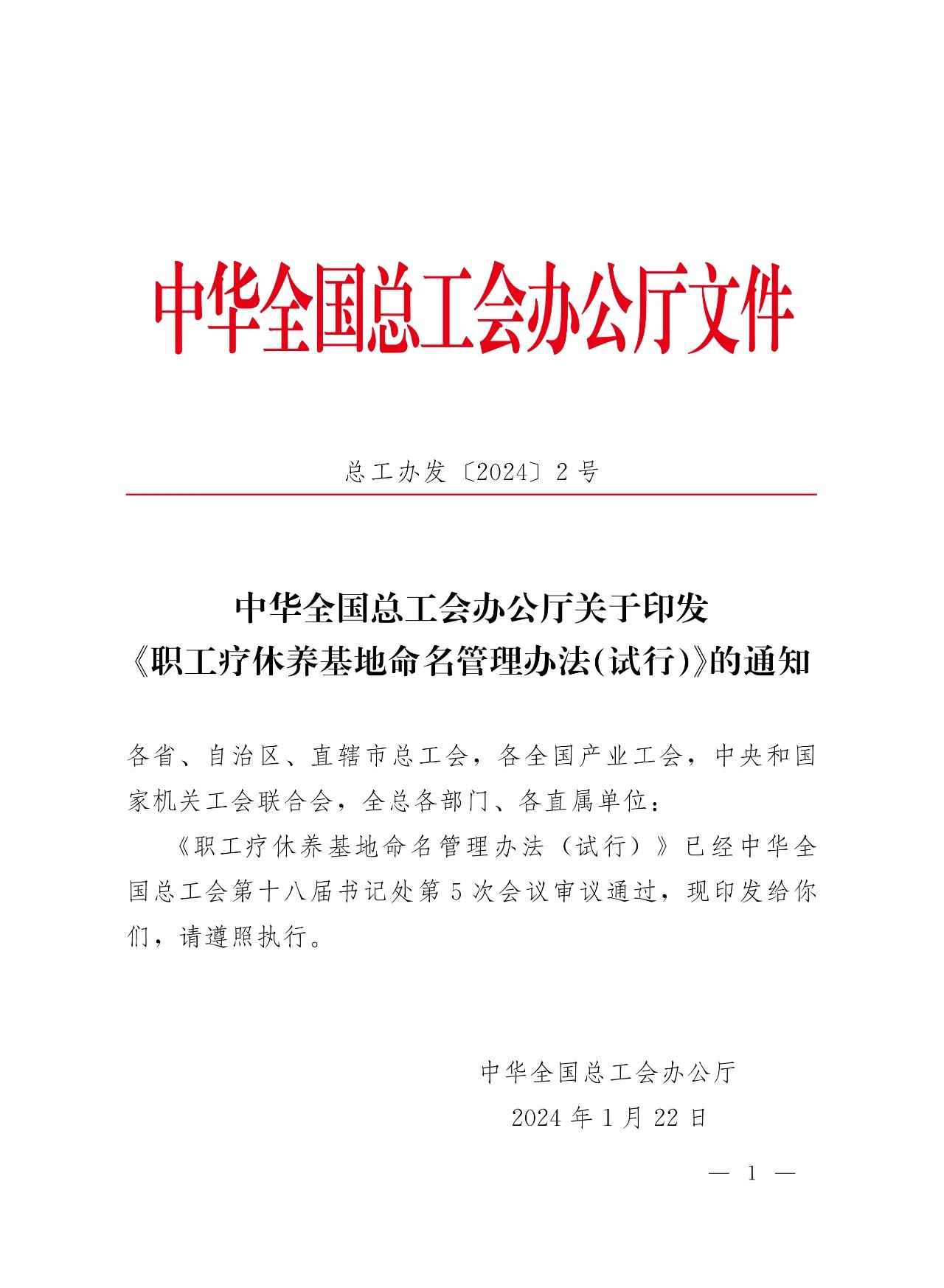 近日,全國總工會辦公廳印發(fā)《職工療休養(yǎng)基地命名管理辦法(試行)》(以下簡稱《辦法》),以規(guī)范職工療休養(yǎng)基地命名管理,維護職工療休養(yǎng)權(quán)益,推動職工療休養(yǎng)事業(yè)實現(xiàn)高質(zhì)量發(fā)展,提升職工生活品質(zhì)。