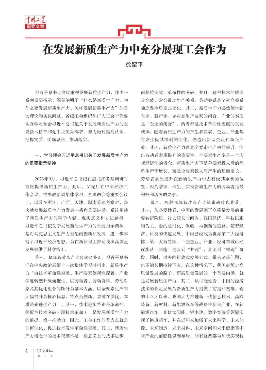 徐留平:在發(fā)展新質(zhì)生產(chǎn)力中充分展現(xiàn)工會(huì)作為