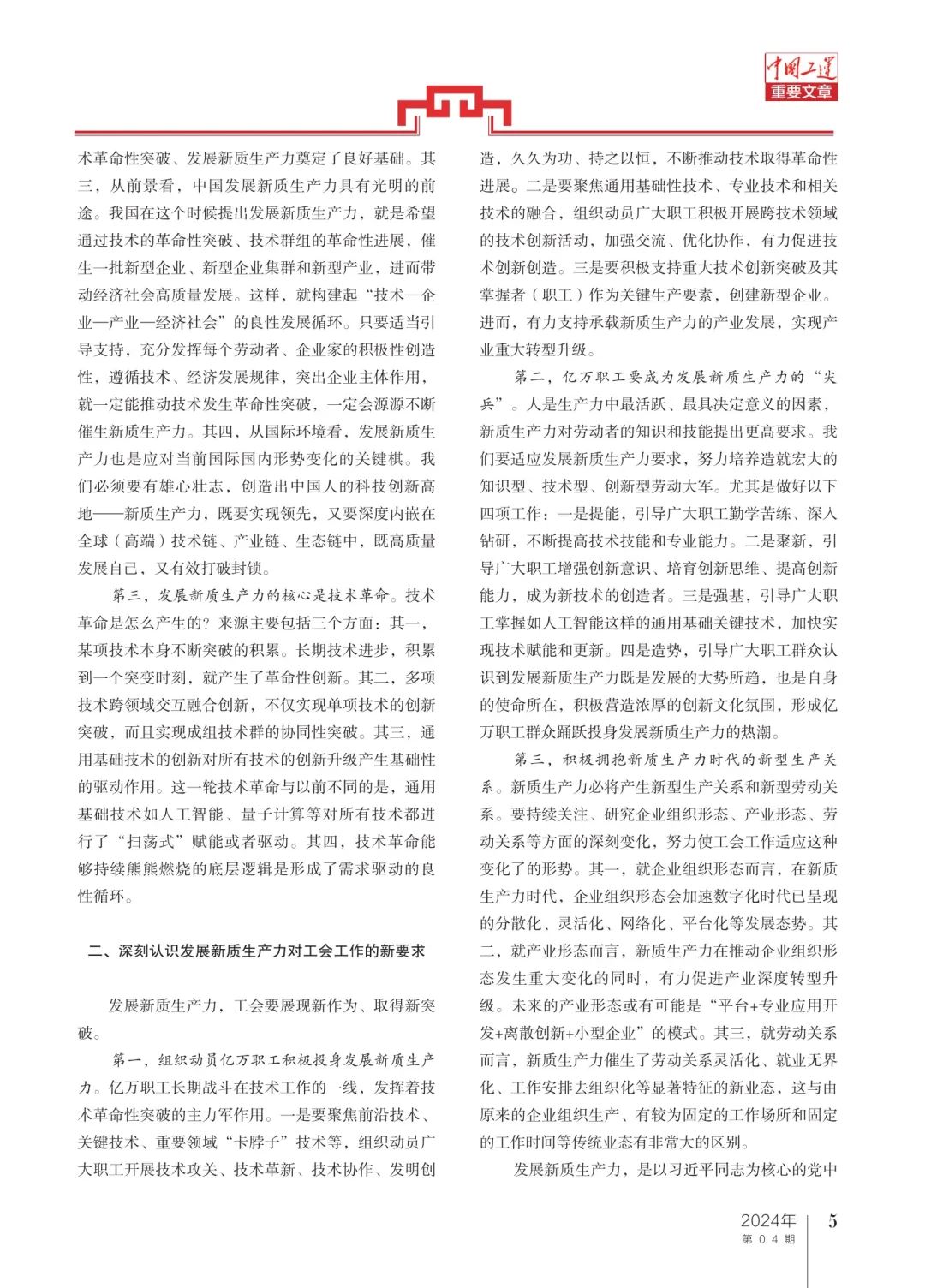 發(fā)展新質(zhì)生產(chǎn)力,工會(huì)要展現(xiàn)新作為、取得新突破。